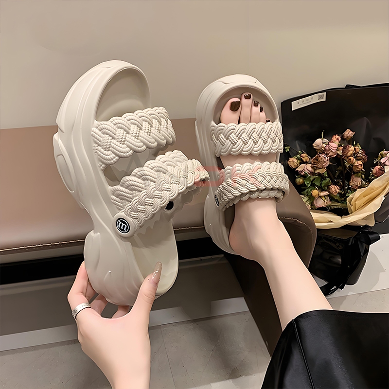 ANDK 2025 Sandal Wedges Wanita Sol Tebal Sandal Wanita Fashion Tali EVA Ekstra Tebal Ukuran 36-40