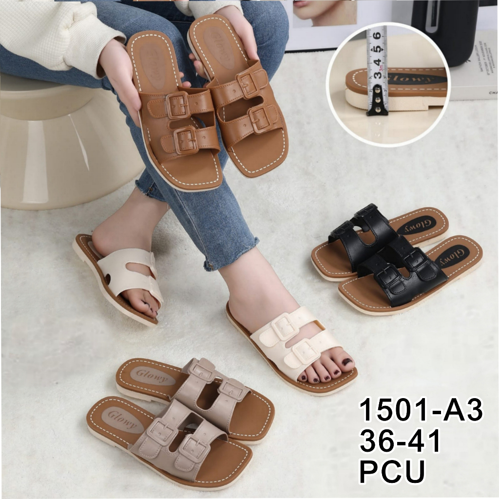 Sandal Flat Wanita Karet Glowy 1501-A3 - Nyaman dan Simpel - Shoes, Jelly