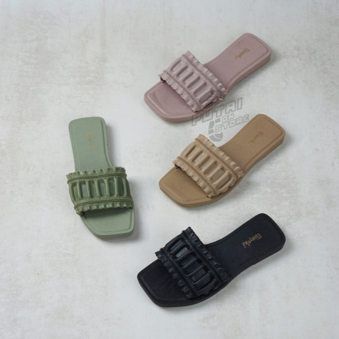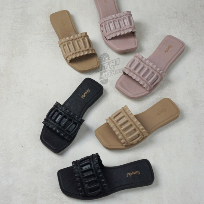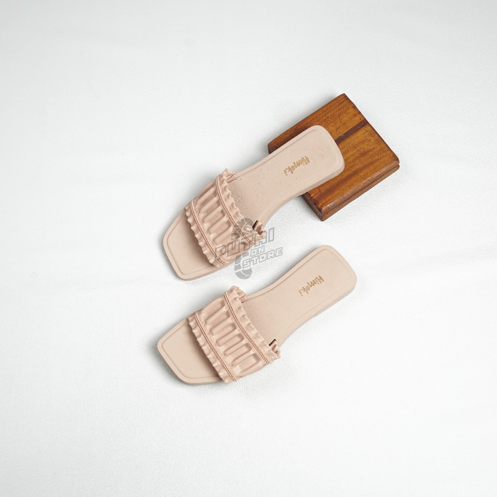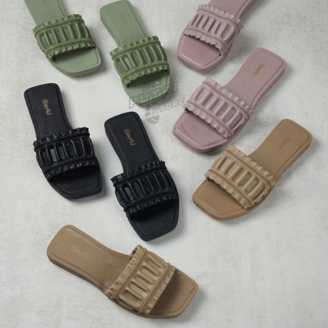 HIMOKI Sandal slop harian aestetic motif kerut simple elegan size 37-40