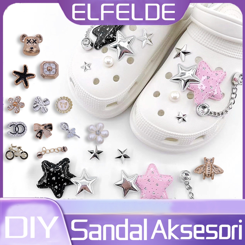 ELFELDE Aksesoris Sandal Permata Hiasan Bintang Sandal Mewah Diamond Korean Style Bros & Pin