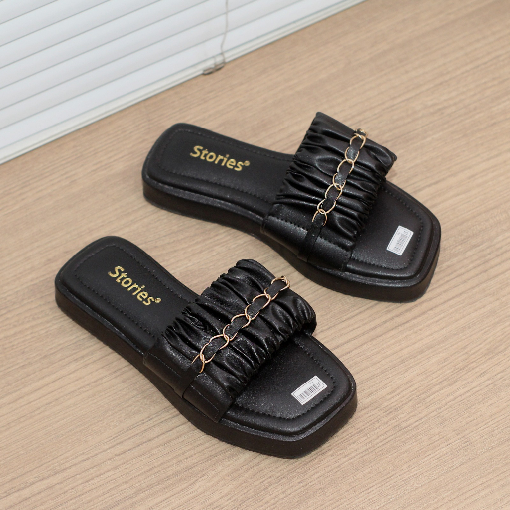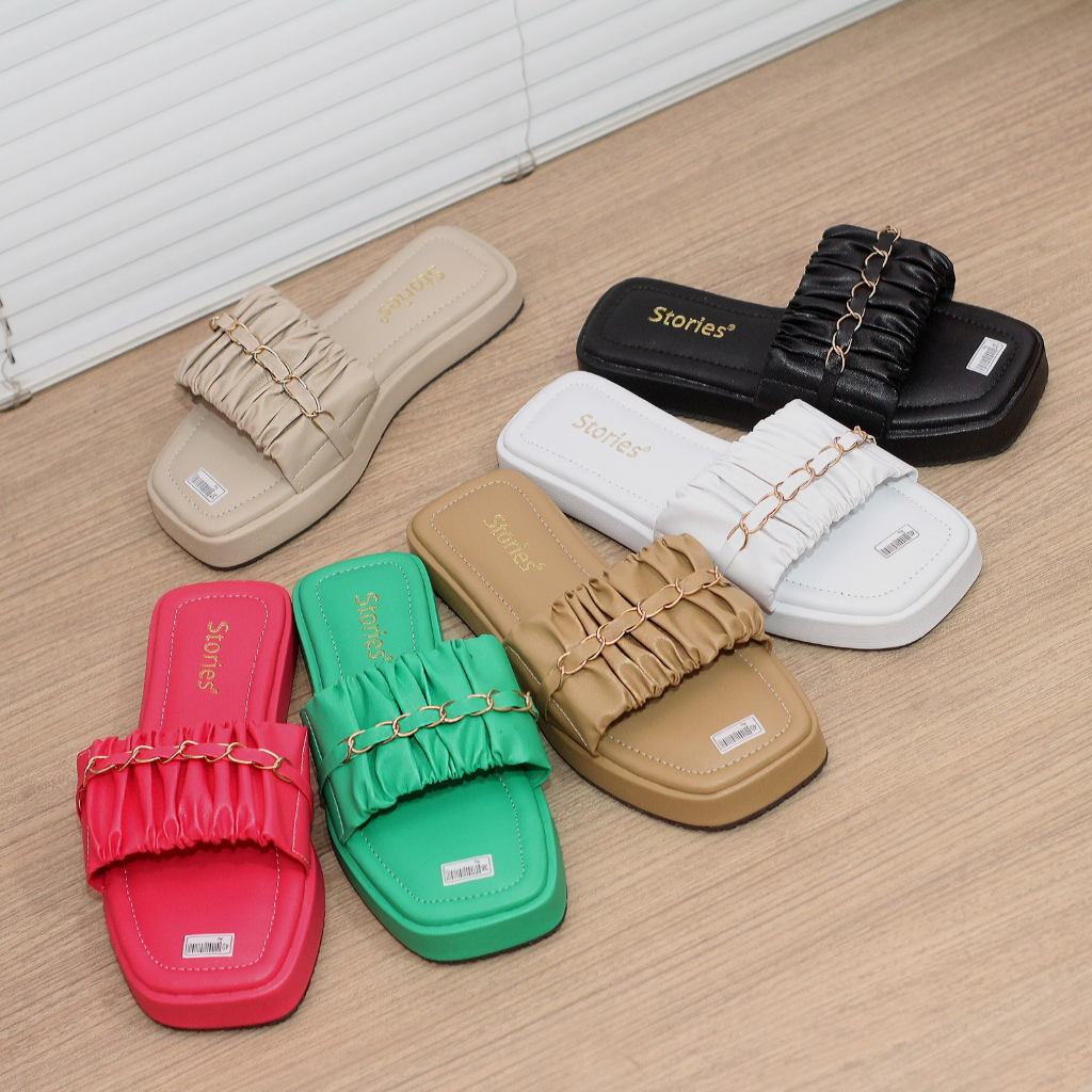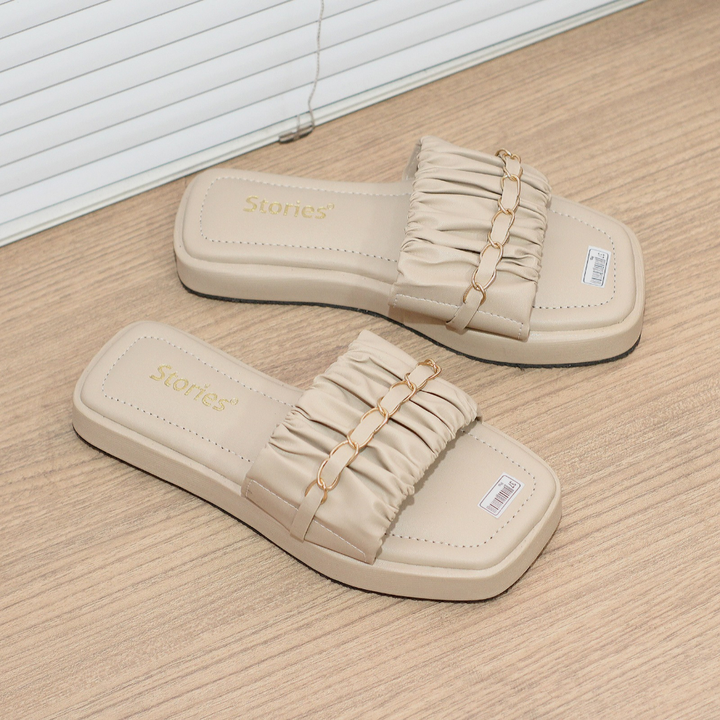 Stories Storee Sandal Wanita Flatform Kerut Rante