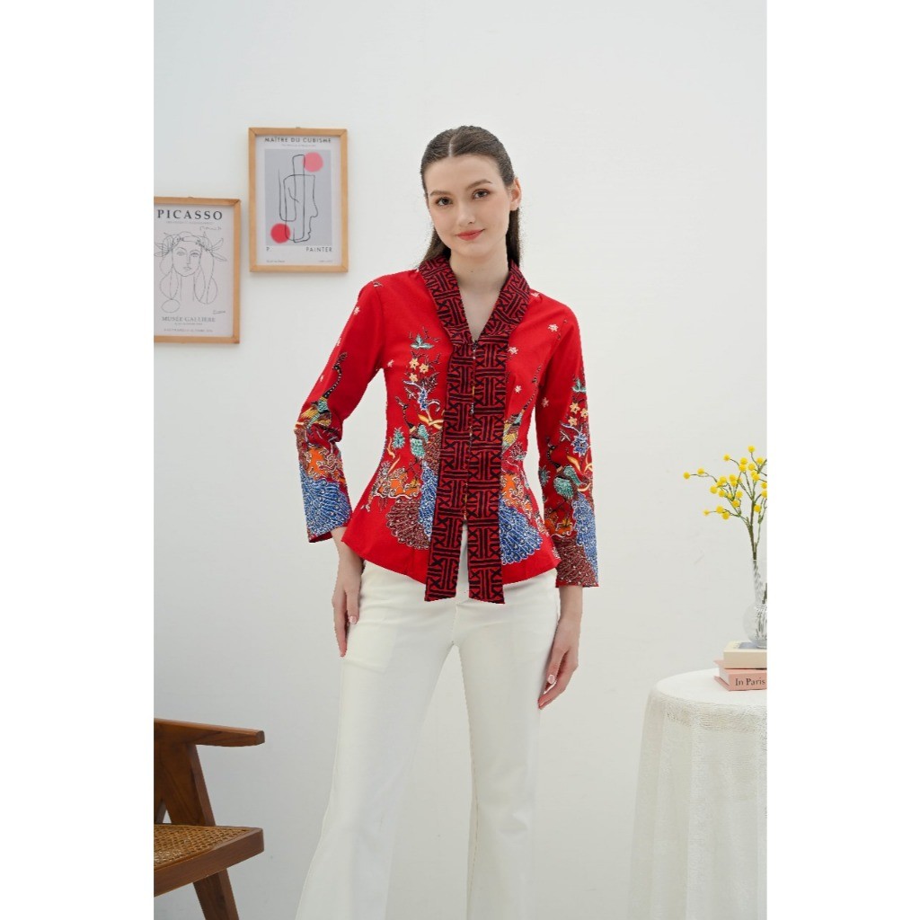 EVERCLOTH AZARIN LONG BLOUSE WANITA LENGAN PANJANG ATASAN BATIK WANITA BLOUSE BATIK PEREMPUAN ATASAN BATIK WANITA LENGAN KEBAYA KIMONO BATIK BAJU KUTU