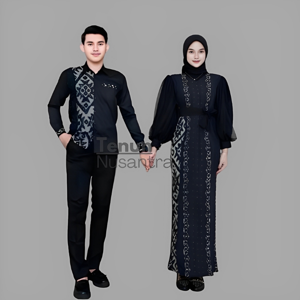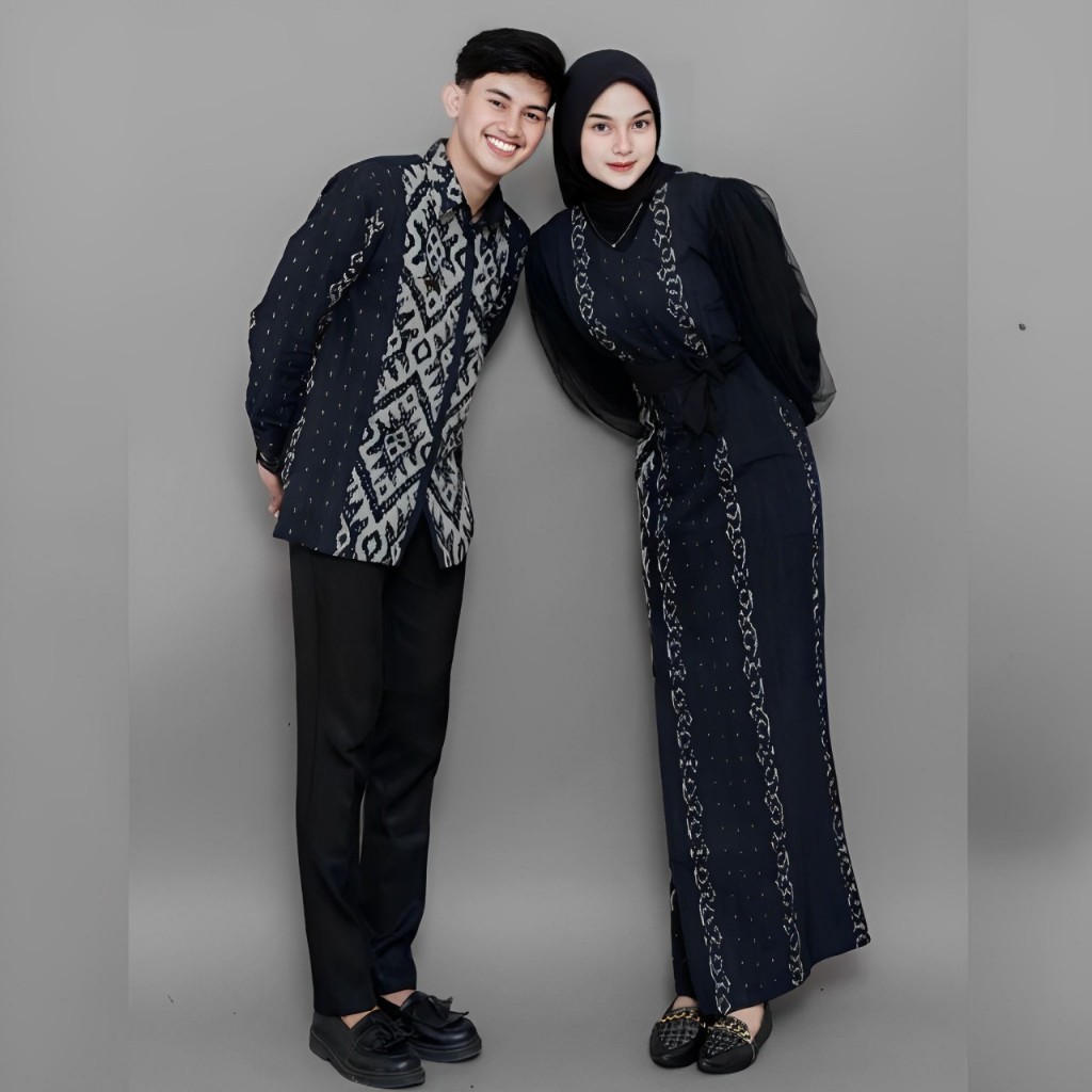 BAJU TENUN COUPLE KONDANGAN SETELAN PRIA WANITA ACARA LEBARAN DRESS BLACK PADMA SET WANITA TERBARU