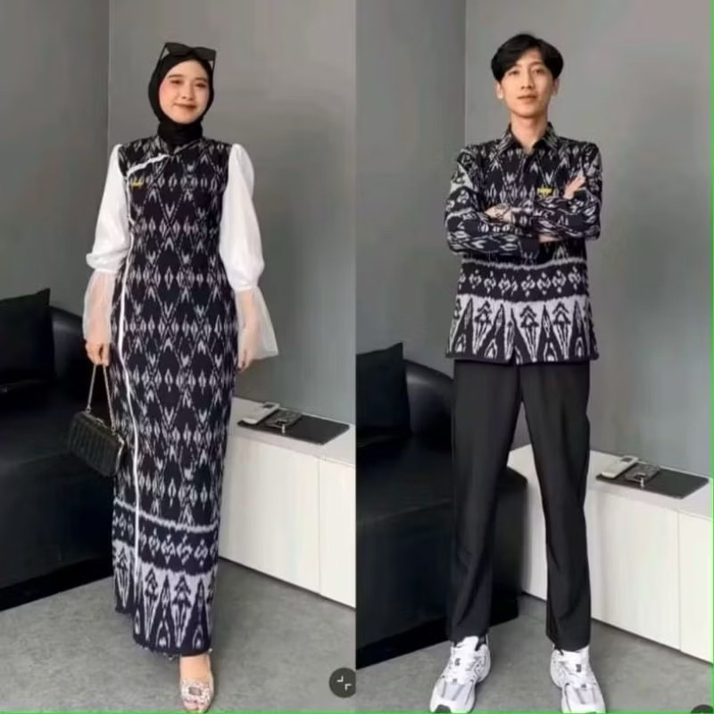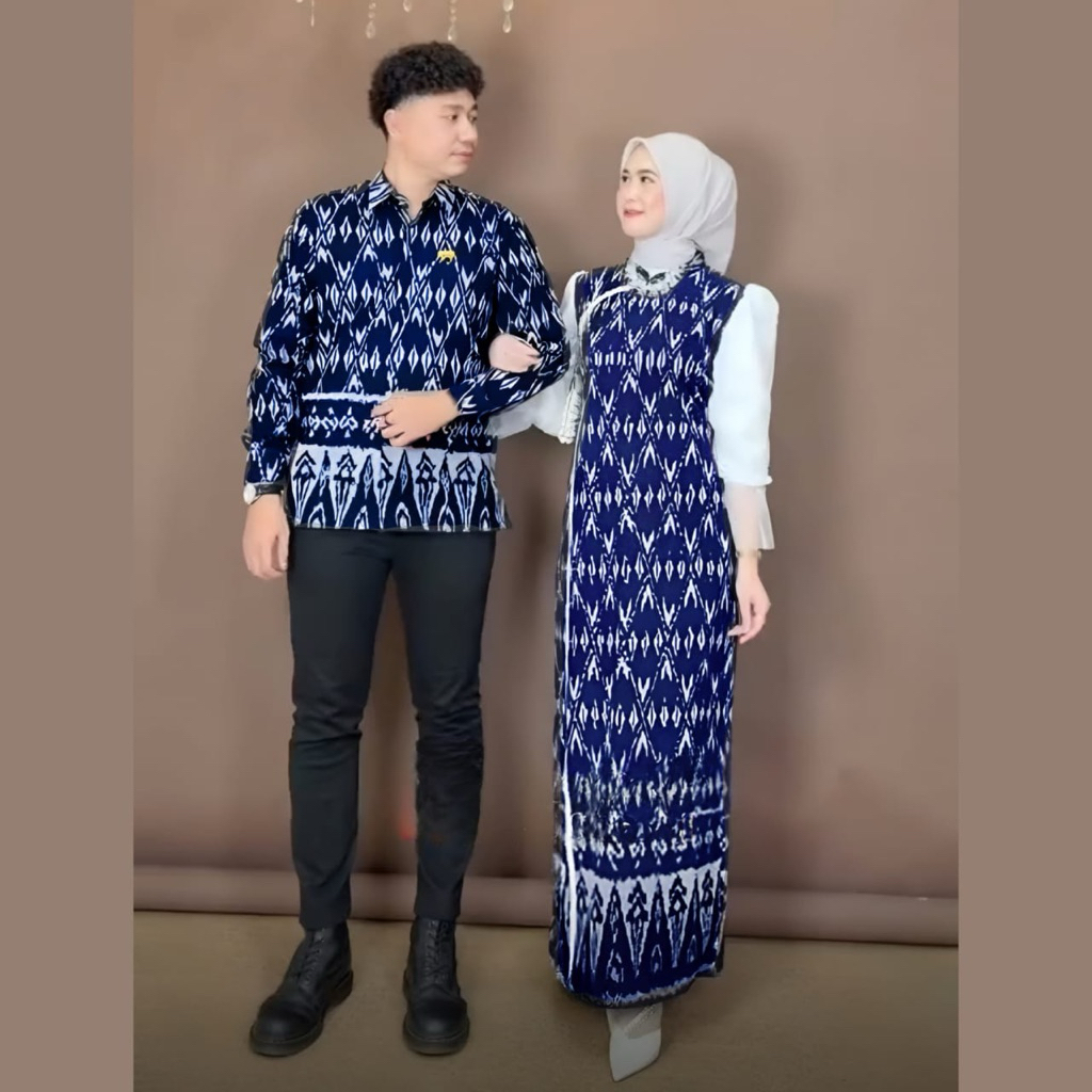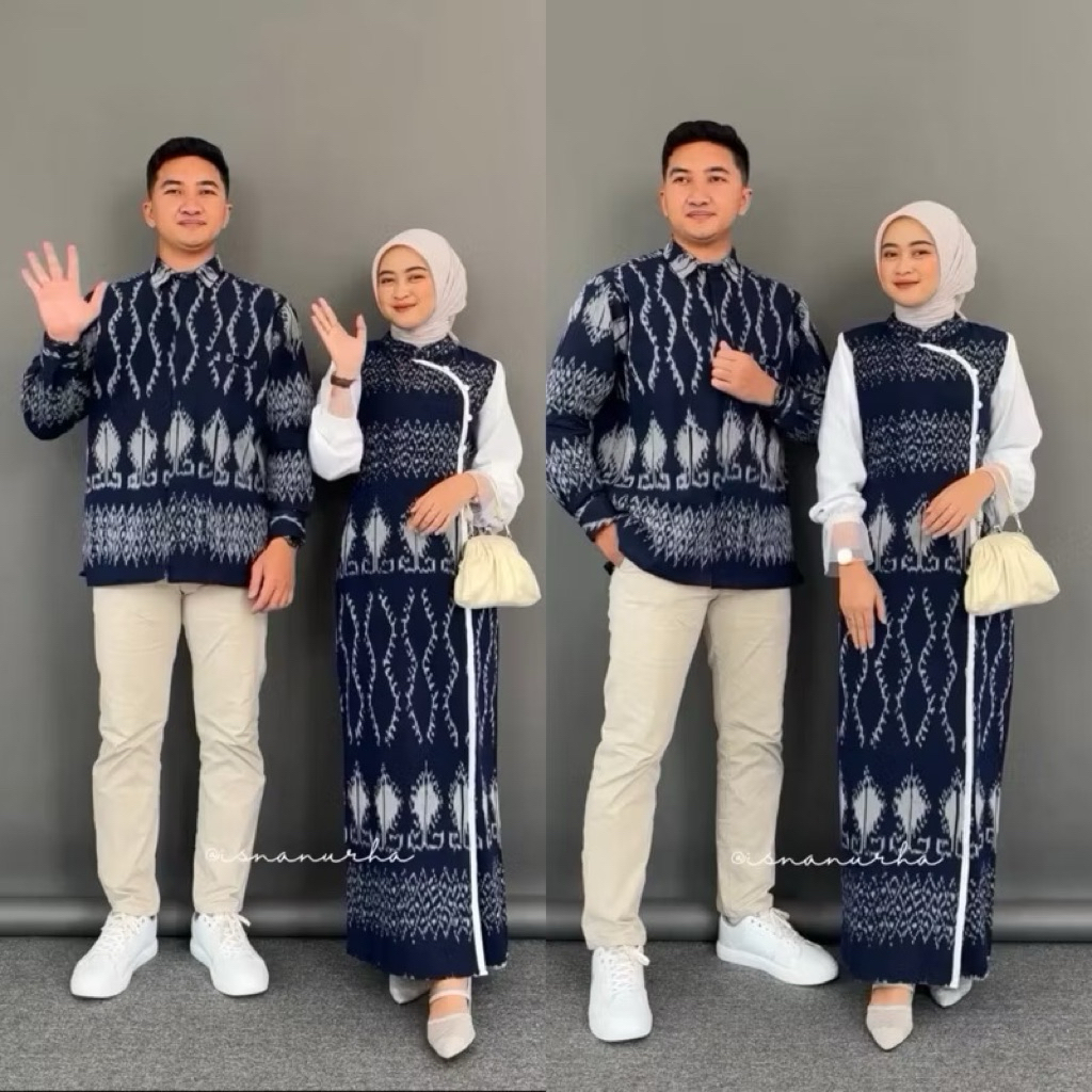 BAJU COUPLE TENUN JENAR NAVY DRESS TENUN JENAR COUPLE KONDANGAN COUPLE PASANGAN