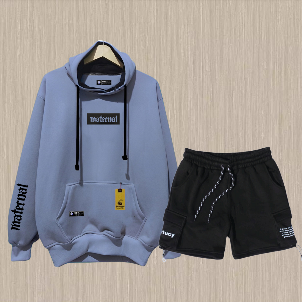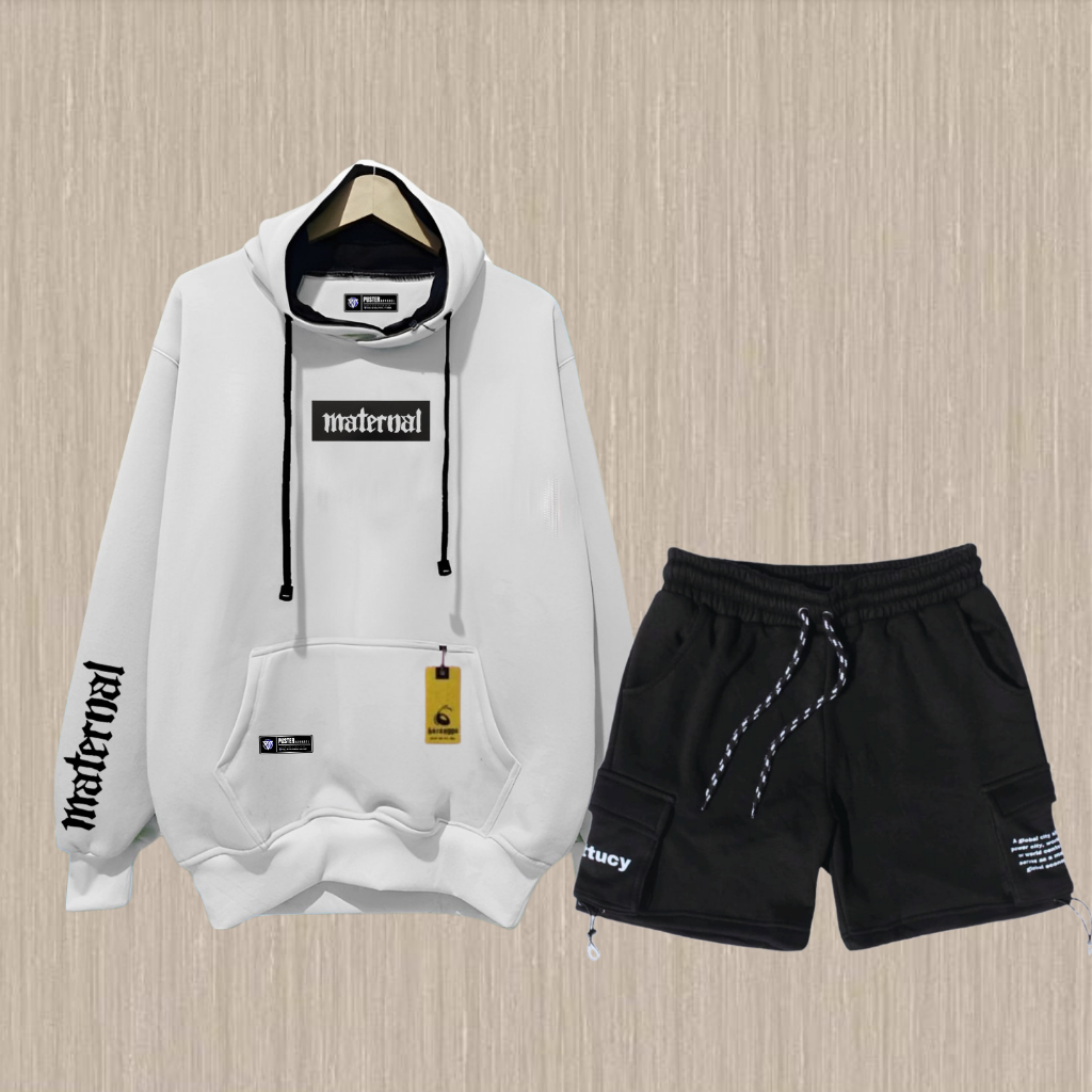 Oneset Hoodie Celana Pendek Pria Wanita Distro Stelan Sweater Celana Cargo Bahan Flece Sablon Maternal Brend Puster Apparel Size M L XL XXL