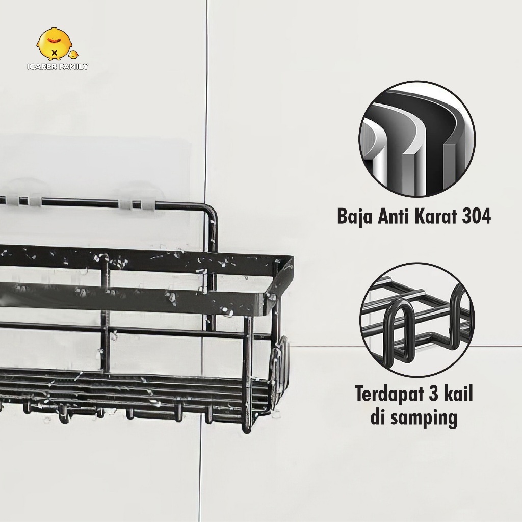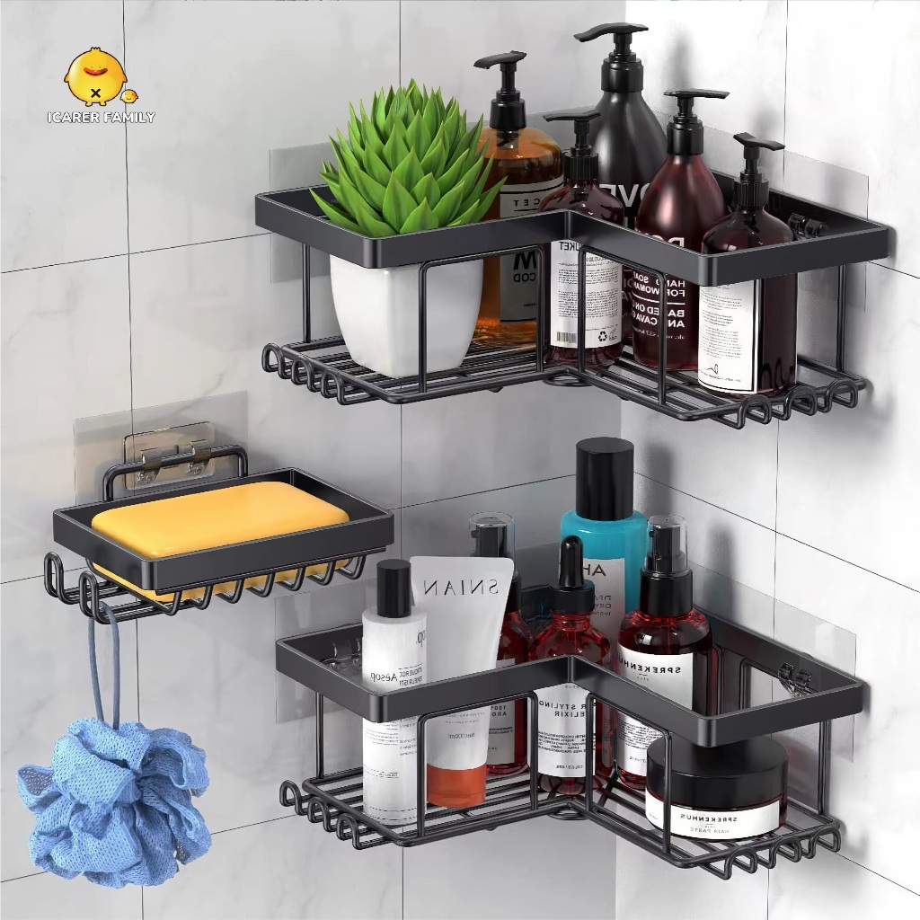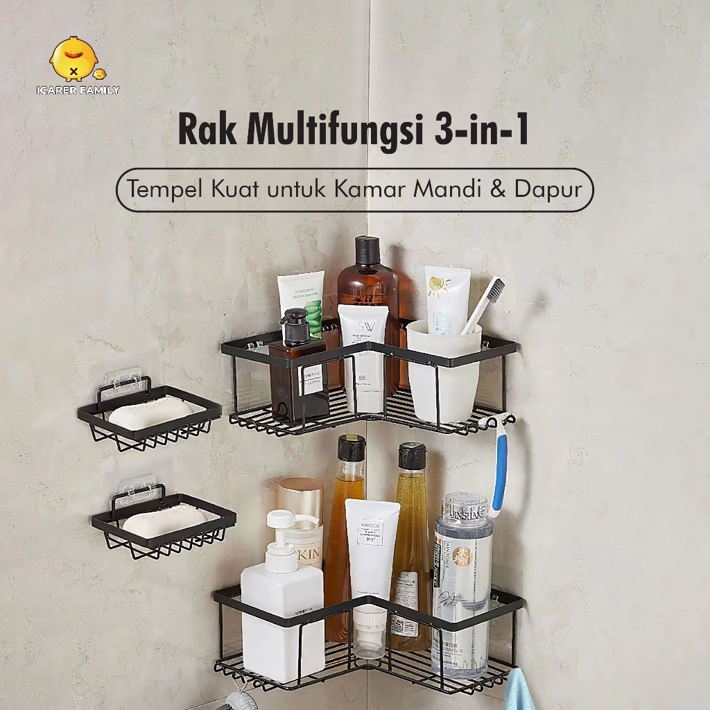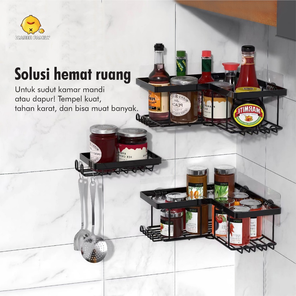 Icarer Family - Rak Sudut Kamar Mandi 3 in 1 Tempel Dinding Keramik Rak Dapur Besi