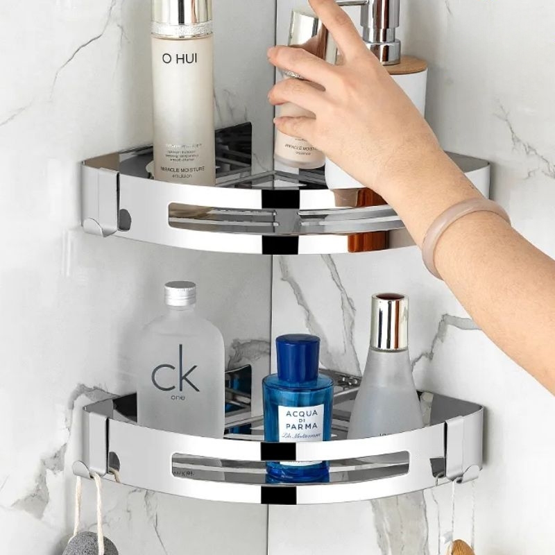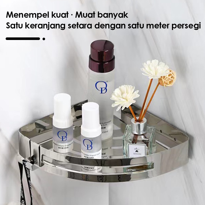Rak Susun Sudut Rak Kamar Mandi Stainless Steel 2 Lapis Tanpa Bor - Anti Karat 304 Tebal, Rak Toilet, Rak Kamar Ma