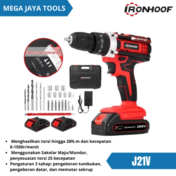 IRONHOOF MESIN BOR LISTRIK 288V 1 SET LENGKAP IMPACT BATERAI CORDLESS BESI TEMBOK BETON KUALITAS TERBAIK GARANSI RESMI