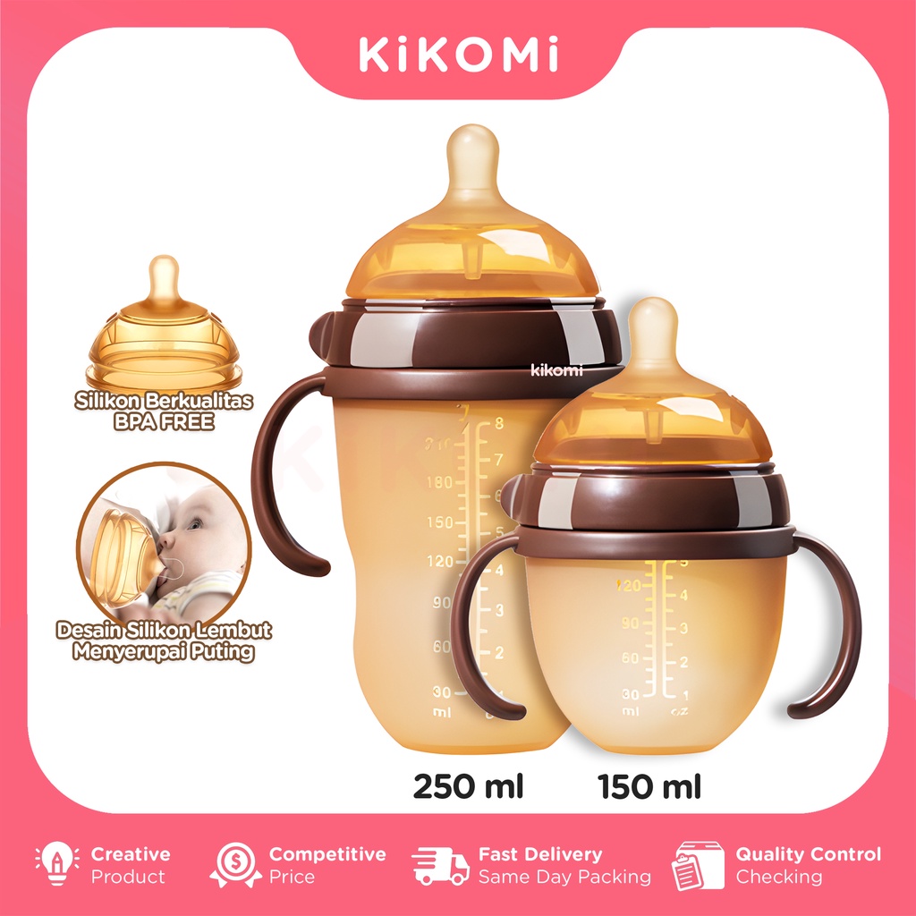 Dot Botol Susu Bayi Silikon 150 & 250 ML Anti Sedak BPA Free Milk Feeding Bottle With Handle - KK