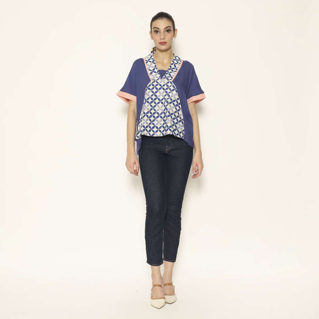 BLOUSE BATIK WANITA - ATASAN BATIK - BHATARA BATIK RIRI - BAJU BATIK MODERN LENGAN PENDEK
