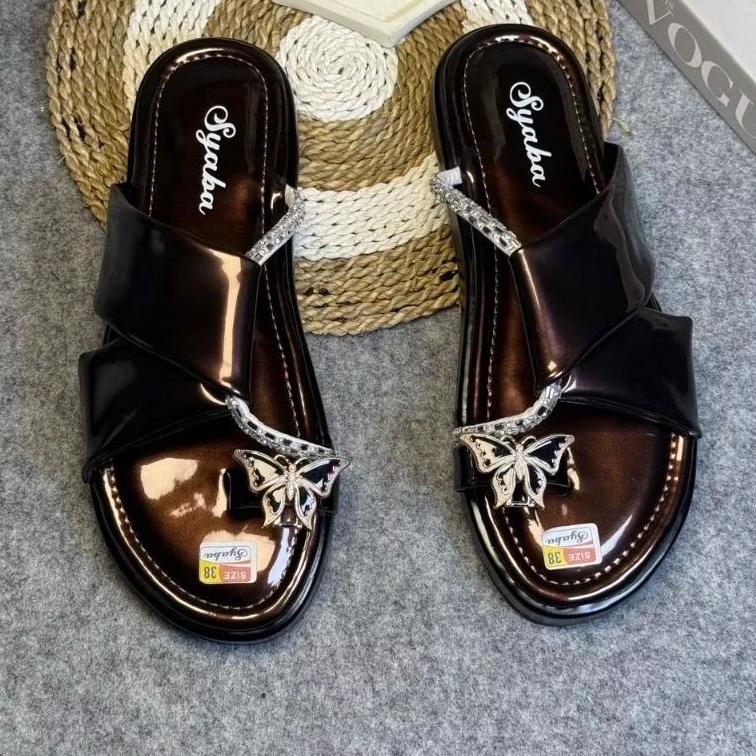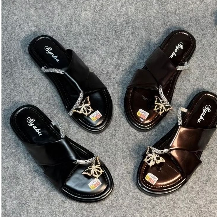 sandal selop wanita trendy model korea ringan dan lembut elegan nyaman dipakai