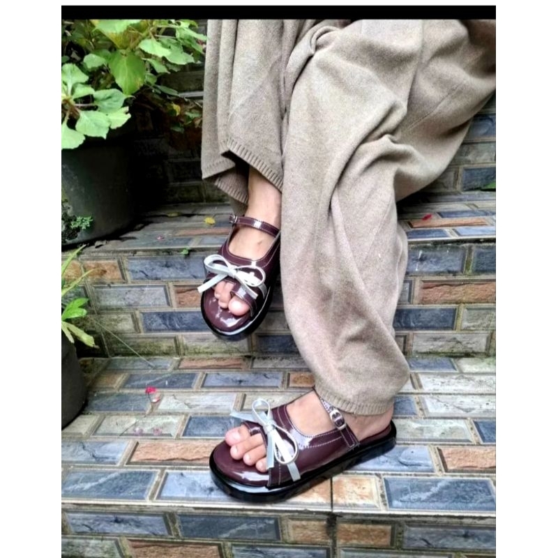 Sandal Wanita Platform Slop Jempol Kekinian Elegan Sendal Empuk Full Busa Flat Cewek