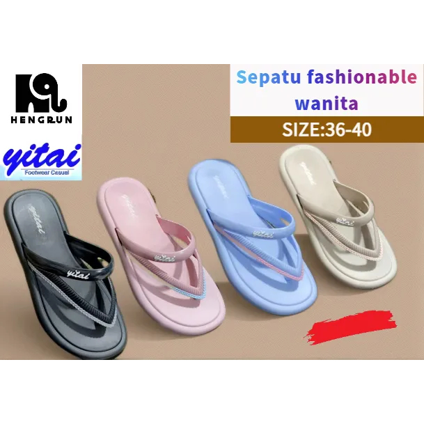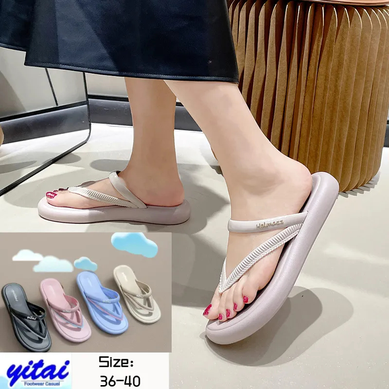 YITAI Sandal Jepit Wedges Tinggi Wanita Murah PVC anti slip Flip Flops Modern Comfy Slippers WSP019 Size 36 - 40
