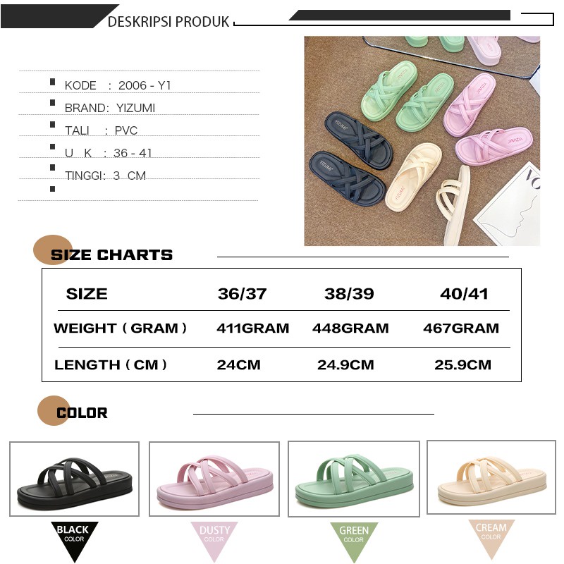 SANDAL SELOP WANITA KARET YIZUMI | SENDAL WANITA SELOP JELLY 2006-Y1