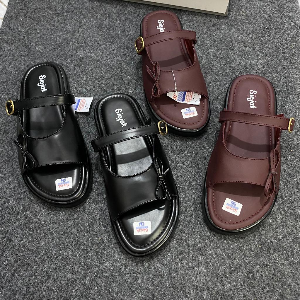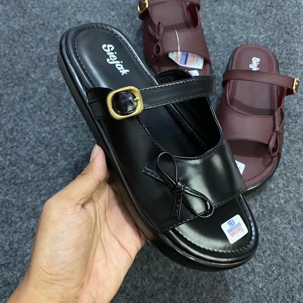 Sandal Platform Wanita Elegant Super Empuk Ringan Kekinian Terbaru Model Slop Tali Gesper Sandal Wanita Lebaran