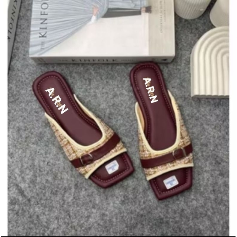 Sandal Teplek Wanita Kokop Flat Gesper Sintetis