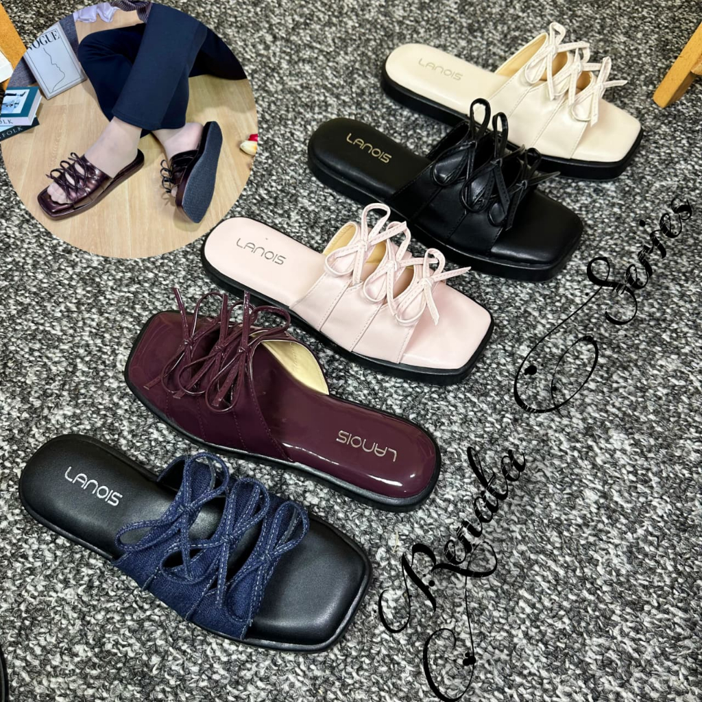 Sendal RENATA Sandal Flat Premium Kekinian Sandal Slop Pita Sendal Cewek Platform 3cm Empuk