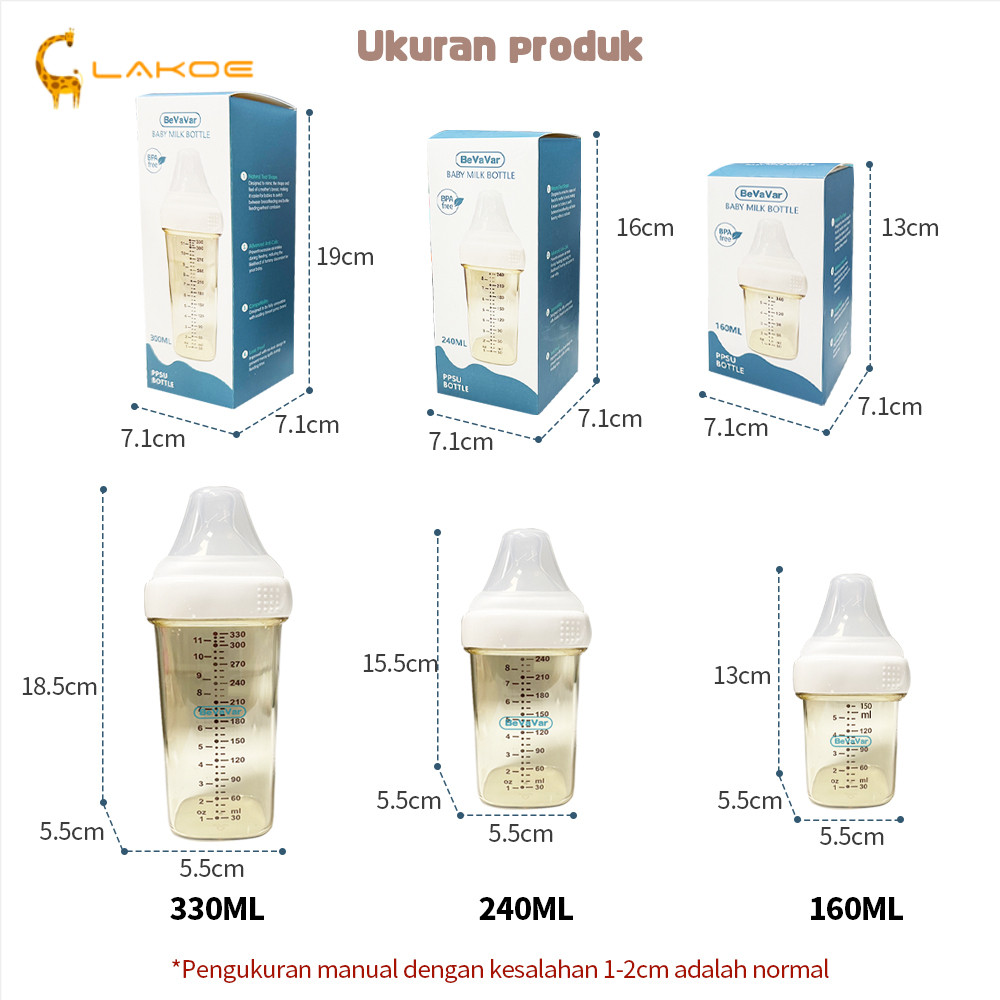 LAKOEOFFICIALMALL Dot Bayi Botol Susu PPSU Botol Wide Neck Newborn Anti Kolik BPA Free 160/240/330ML