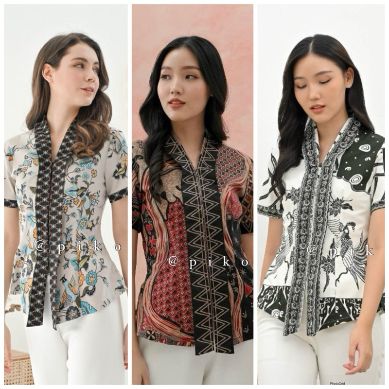 BAJU BATIK WANITA / ATASAN BATIK CEWEK / SERAGAM BATIK KANTOR / BLOUSE KATUN BATIK MODERN 292 PENDEK
