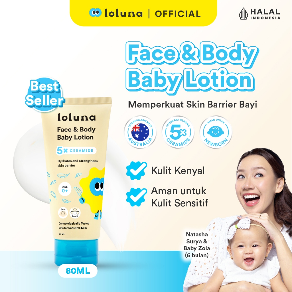 Loluna Face & Body Baby Lotion- Lotion Krim Muka dan Badan Bayi dan Anak / Krim untuk Newborn / 5x Ceramide