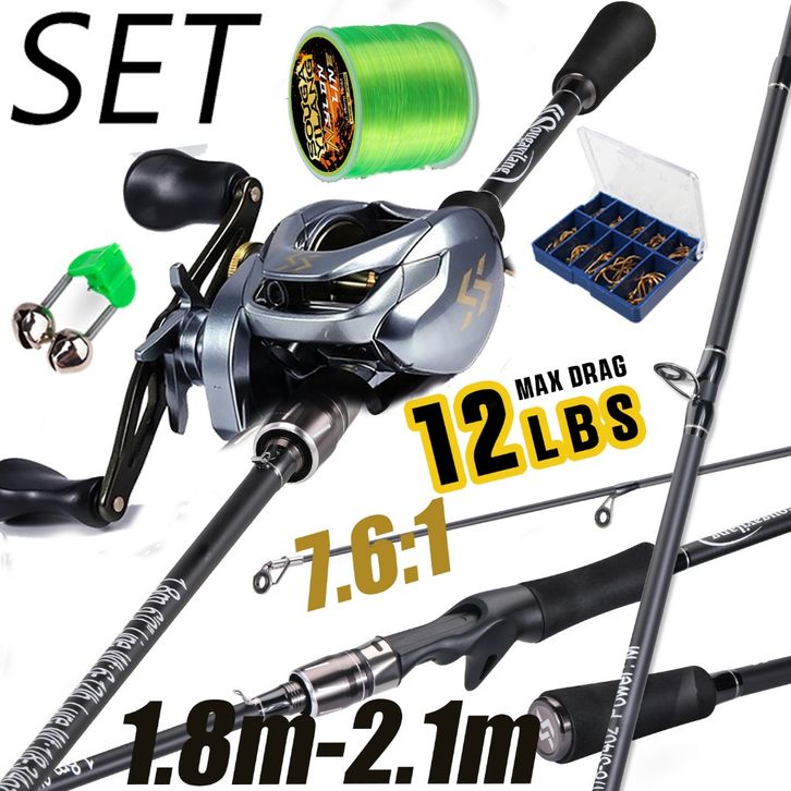 1.8m-2.1m Pancing Set Carbon with Penuh Logam Reel Pancing Freel Senar Umpan 7.6:1 11+1BB Max Drag