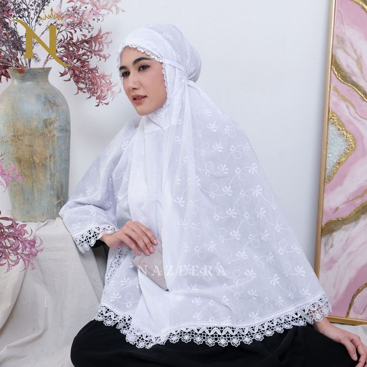 RK - Nazeera - Bergo Instan Haji Dan Umroh Bersaku Renda Mewah Bahan Katun Paris Prada Hijab Jumbo Bordir Mewah