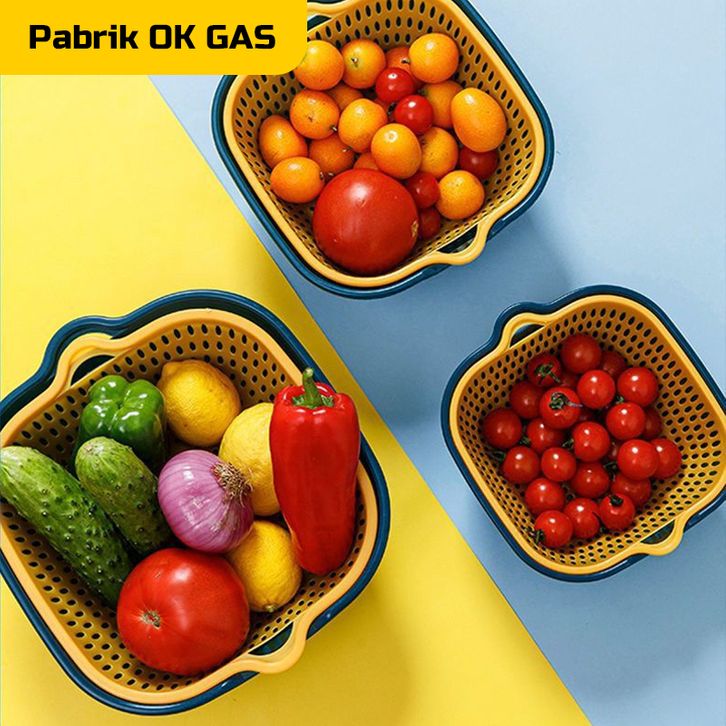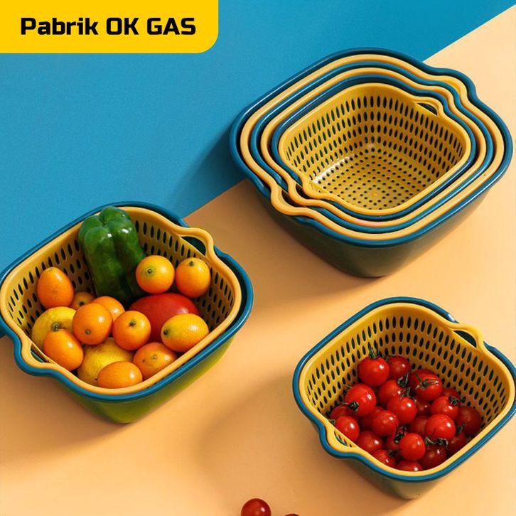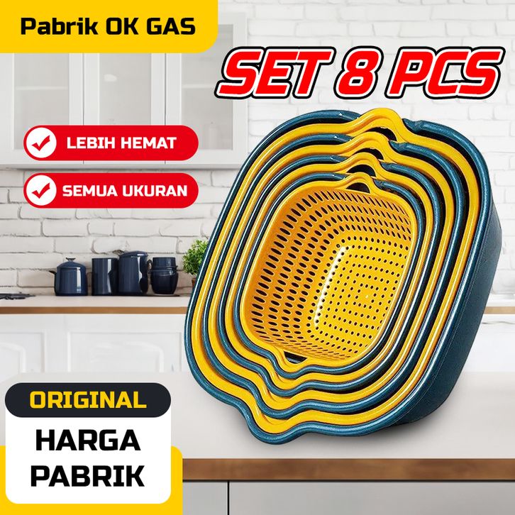 Set Baskom Beragam Ukuran Tirisan Set 8 Pcs Plastik Wadah Cuci Sayuran Buah Multifungsi Keranjang Saringan Set
