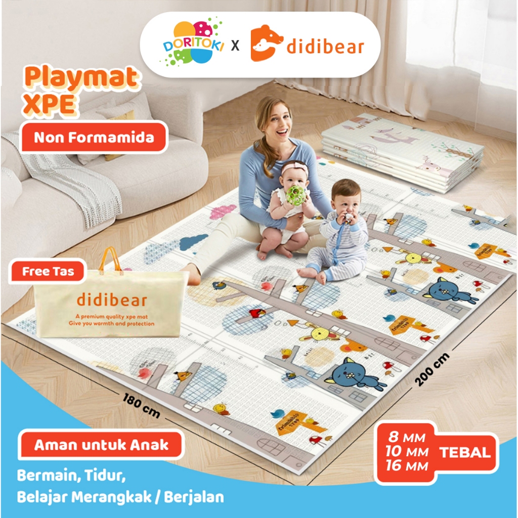 Doritoki X Didibear SNI Playmat Lipat Anak Xpe Matras Bayi Uk 180 x 200 cm Tebal 10 mm ( Bonus Tas)