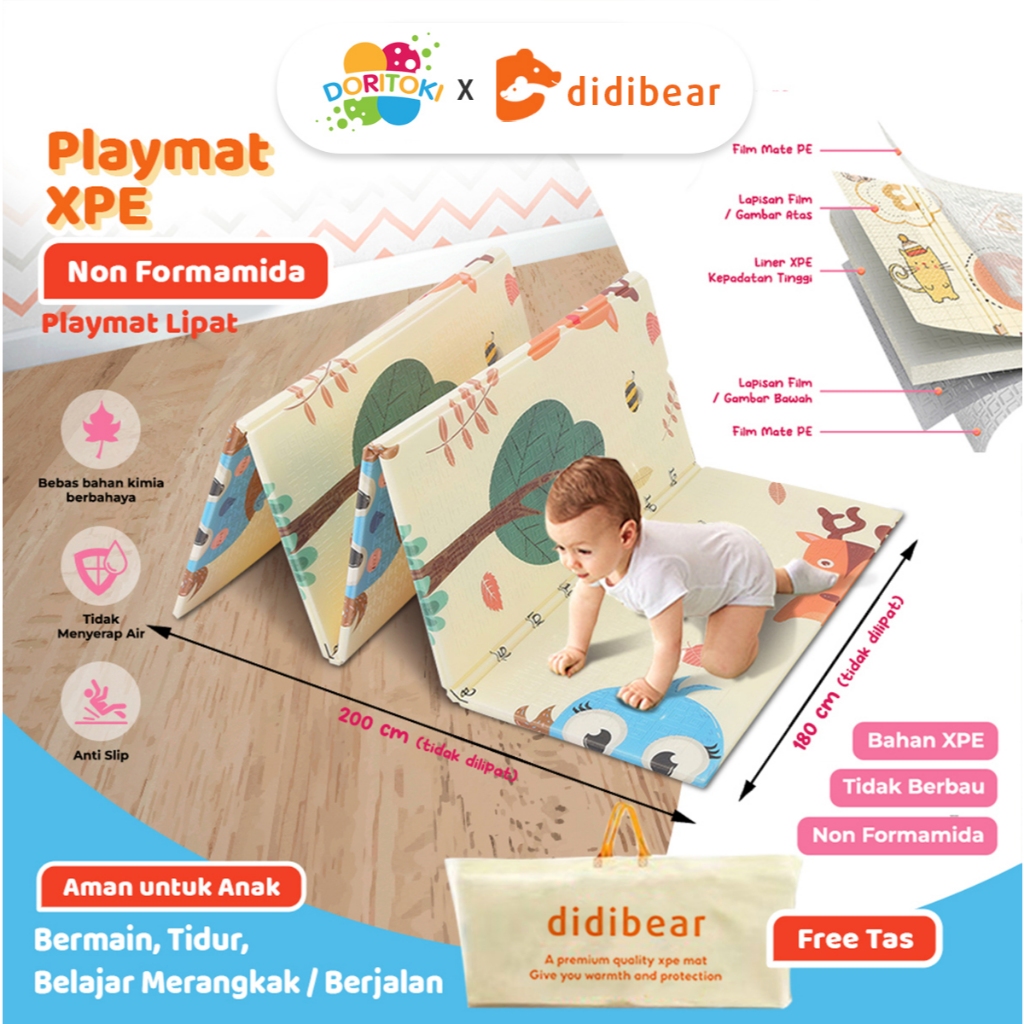 Doritoki X Didibear SNI Playmat Lipat Anak Xpe Matras Bayi Uk 180 x 200cm Tebal 10 mm