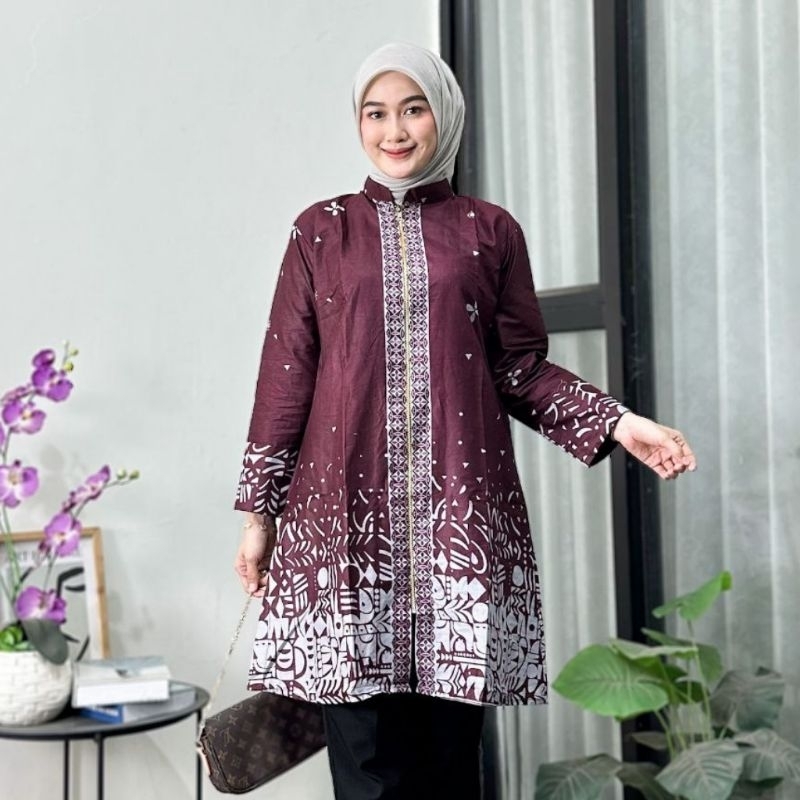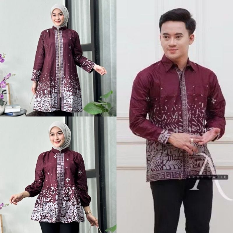 BATIK COUPLE TERBARU MOTIF SUTENA BURGUNDY BAJU BATIK COUPLE MODERN