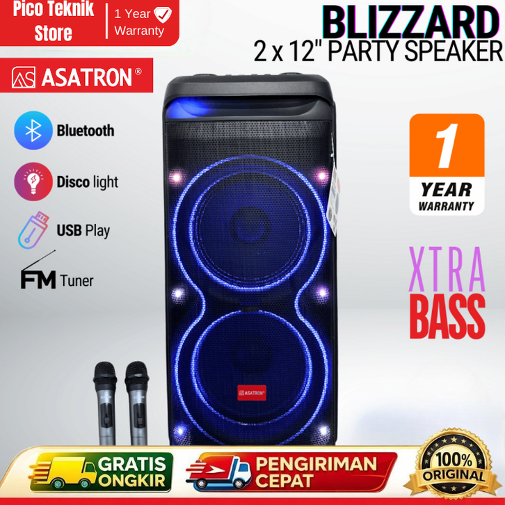 Speaker Bluetooth Party Asatron Blizzard Dual 12 Inch with 2 Wireless Mic Gratis Ongkir