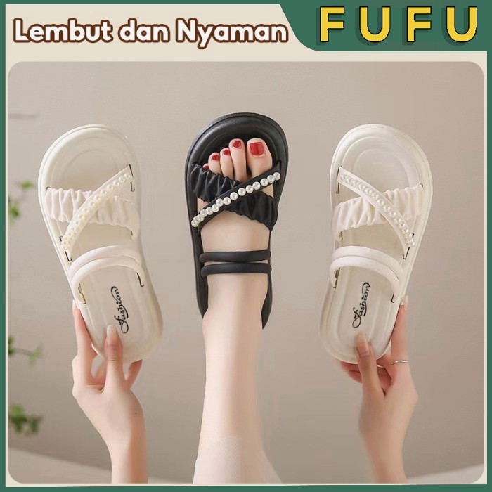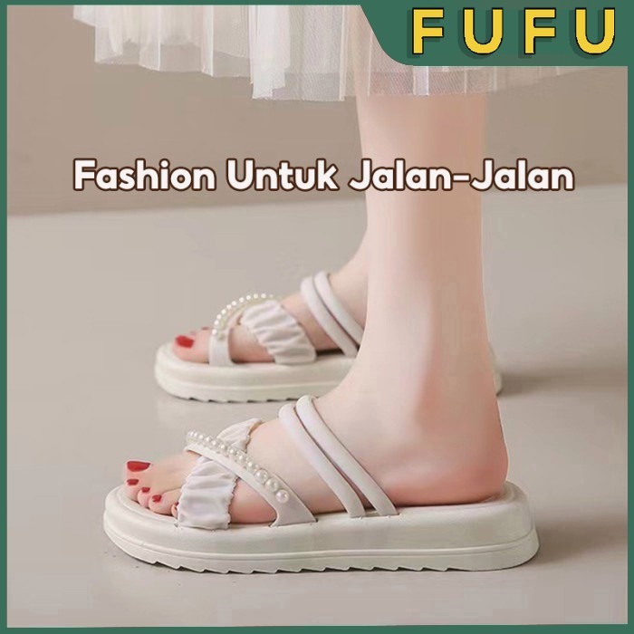 FUFU Sandal Bersol Platform Untuk Wanita Modis Sandal Rumah Bersol Tebal Serbaguna Sandal Anti Selip Gaya Korea