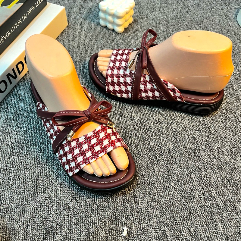Sandal Wedges Selop Fashion Rajut Pita Kekinian Korean Style Viral