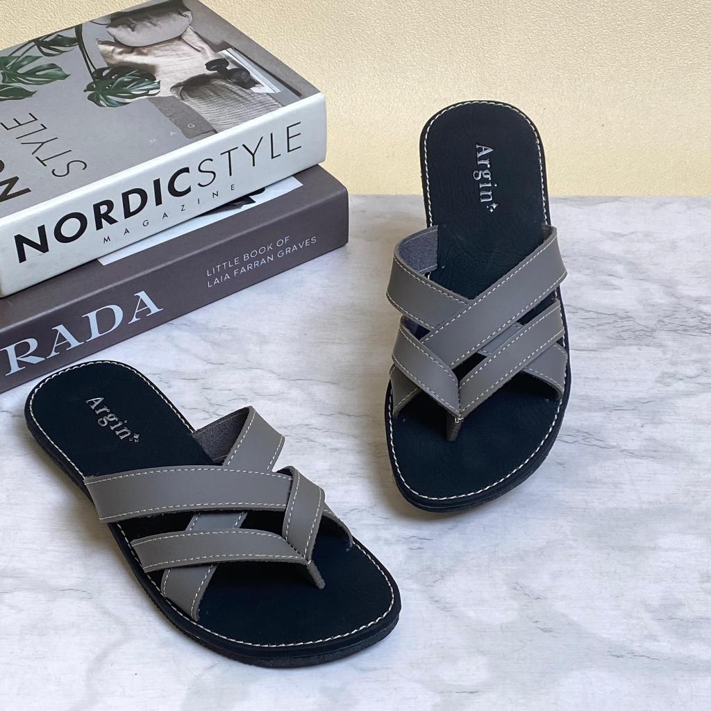 ALEESHA Argin Sandal Wanita Bahan Kulit Sintetis Model Slop Kokop Slide Nonslip Flat Teplek Karet