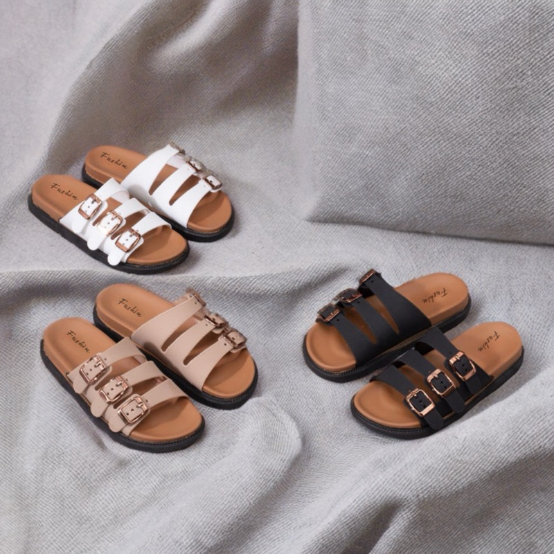 Sandal wanita tali terbaru POU ringan empuk nyaman kokoh lentur sandal wanita slop