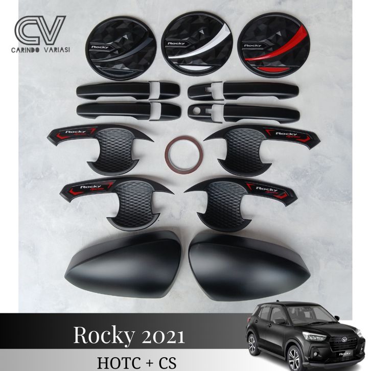 Paket Cover Spion Handle Outer Pintu Tutup Tangki Mobil Daihatsu Rocky 2021 Hitam All Variant