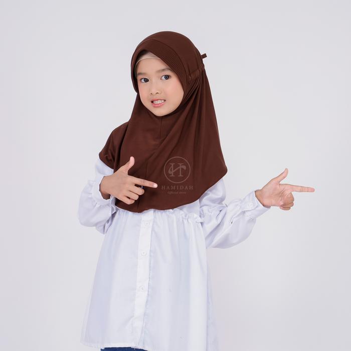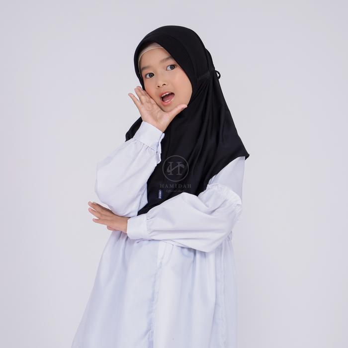 HIJAB BERGO SERUT INSTAN ANAK HAMIDA PREMIUM ALL SIZE - BLACK PB 63cm / PD 32cm