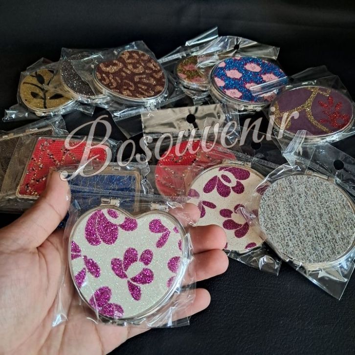 TERMURAH isi 50 Cermin Kaca Gliter Souvenir Pernikahan cermin rias Lipat esabr