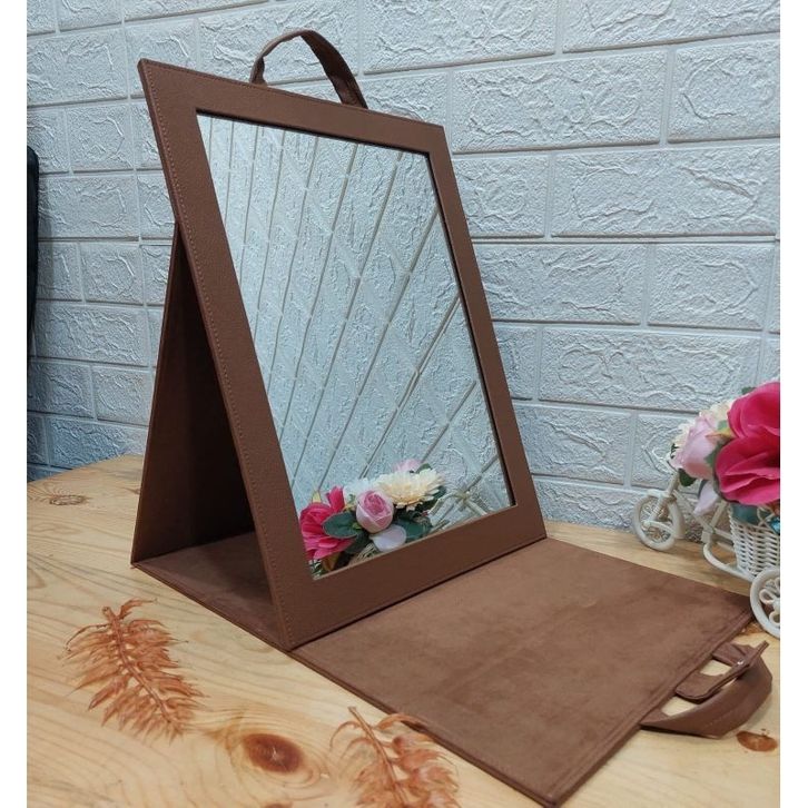 TERBARU Cermin Kaca Rias Mike Up Lipat MUA 30×40 28×38 Cm Bahan Kulit Sintetis Model Jaitan ahabb