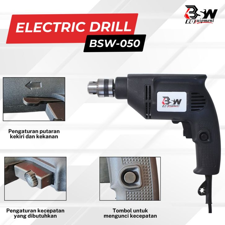 Mesin Bor Listrik 10mm Bolak Balik Electric Drill Bor Beton Kayu Besi kualitas terbaik BSW