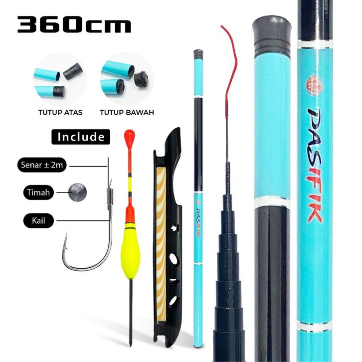 Paket Set Lengkap Joran Tegek Pancing Serat Kaca dengan Kail Timah Pelampung dan Gulungan Senar