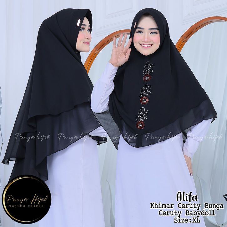 RK - hijab khimar 2 layer jumbo syari bunga jilbab instan Ceruty babydoll punya hijab