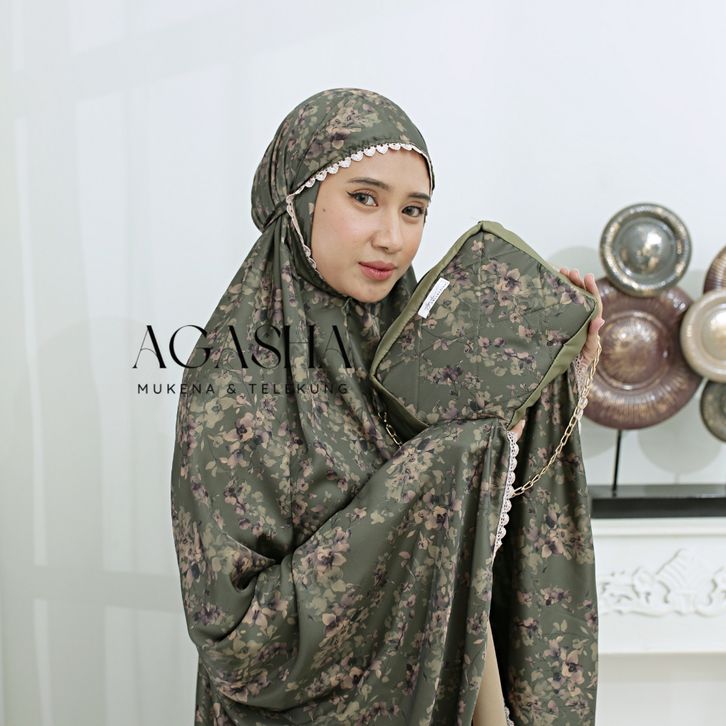 RK - Mukena Myesha Resleting 2in1 Armani Silk Motif Bunga Renda Premium