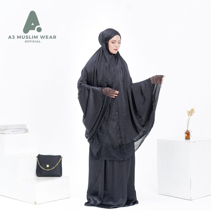 RK - A3 Muslimwear - Mukena Dewasa Santorini Silk Premium 2in1 Renda Jumbo Mewah Terbaru Free Tasbih