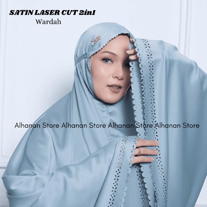 RK - Alhanan - Mukena Dewasa Satin Silk Premium Travel Jumbo Traveling Laser Cut 2in1