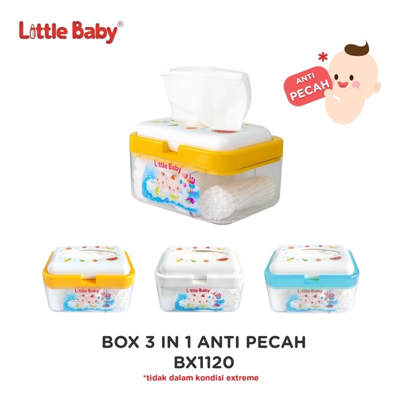 Little Baby BOX 3in1 ANTI PECAH Tissue + Kapas + Cotton Bud + Wadah penyimpanannya - 3 in 1