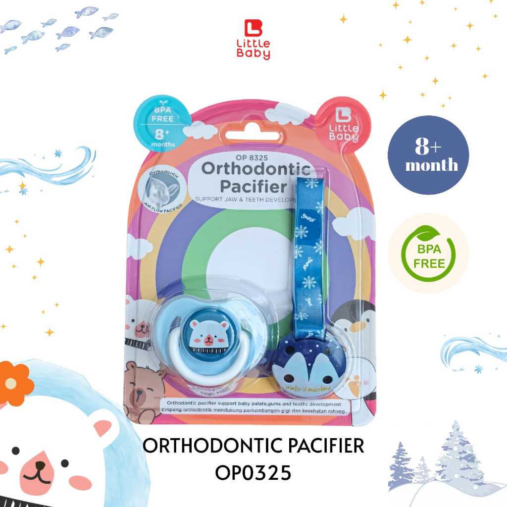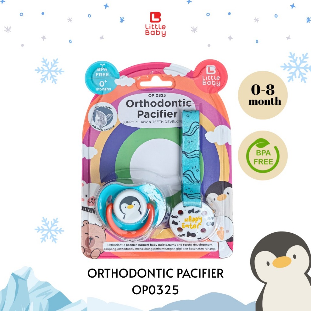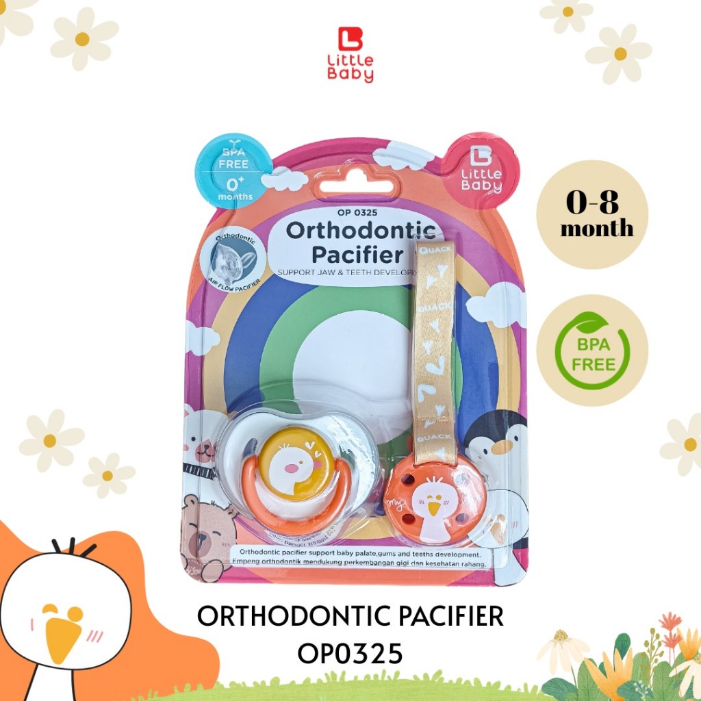 Little Baby Premium Orthodontic Pacifier With Strap | Dot Bayi pipih dengan tali | empeng Orthodontic Pipih dengan tali penjepit