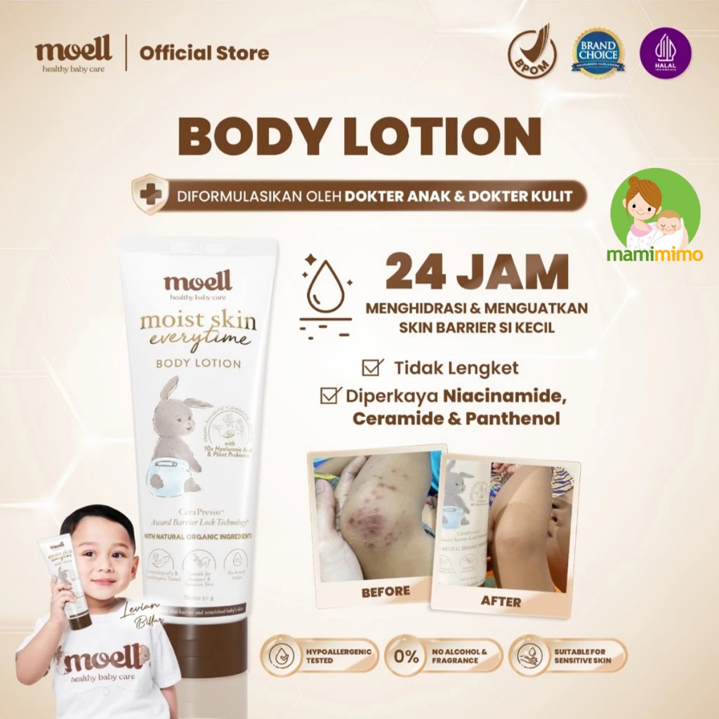 Moell Cream Body Lotion Krim Pelembab Perawatan Kulit Kering Anak Bayi Losion Baby Skin Care Bandung