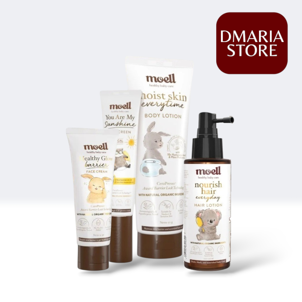 Moell Exclusive Combo - Body Lotion 185gr & Hair Lotion 100ml & Sunscreen 30gr & Face Cream 40gr