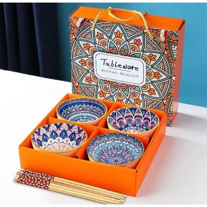 AJM Hampers Mangkok Keramik 4in1 Free Sumpit